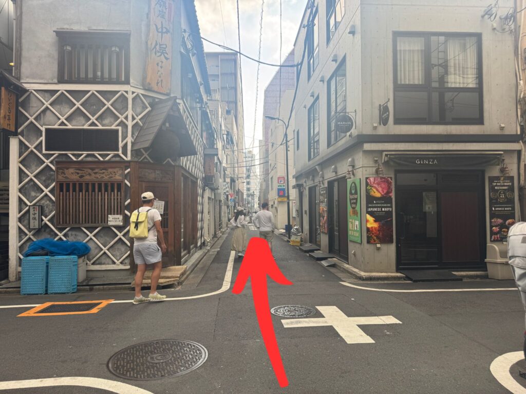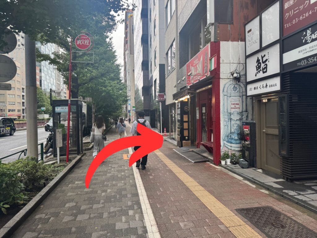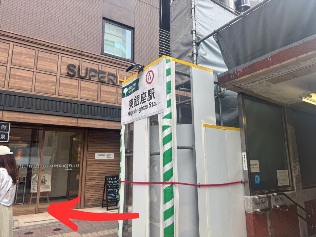 ①東銀座駅「A7」出口を出ます。
